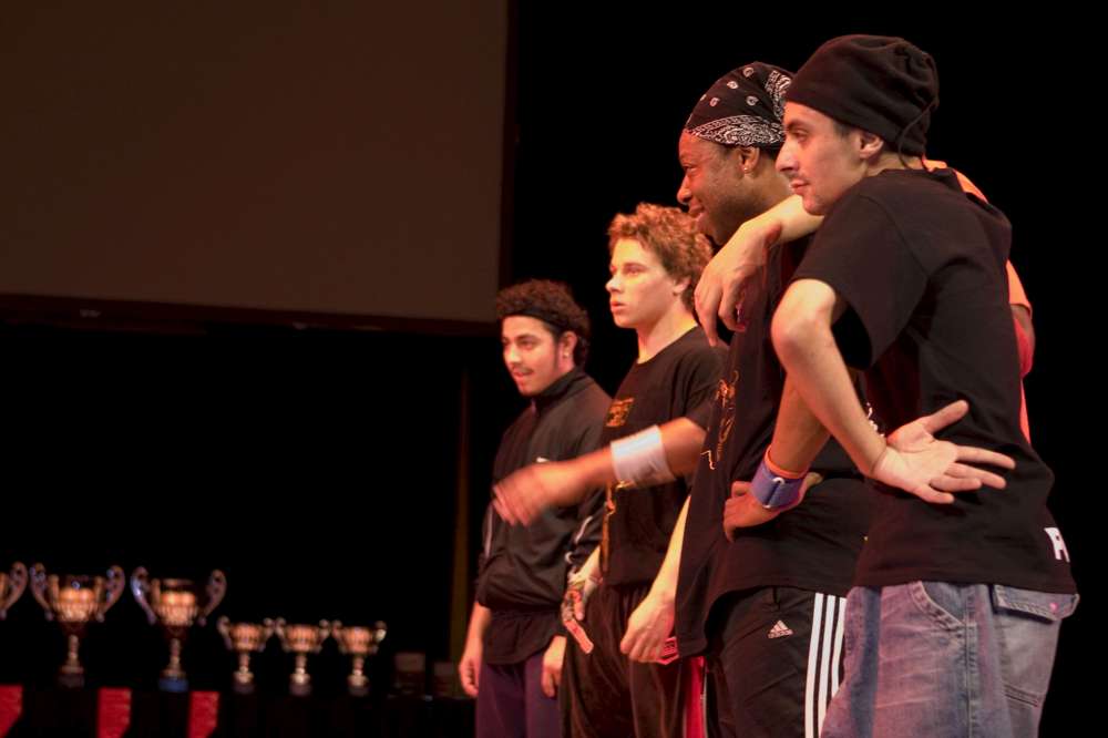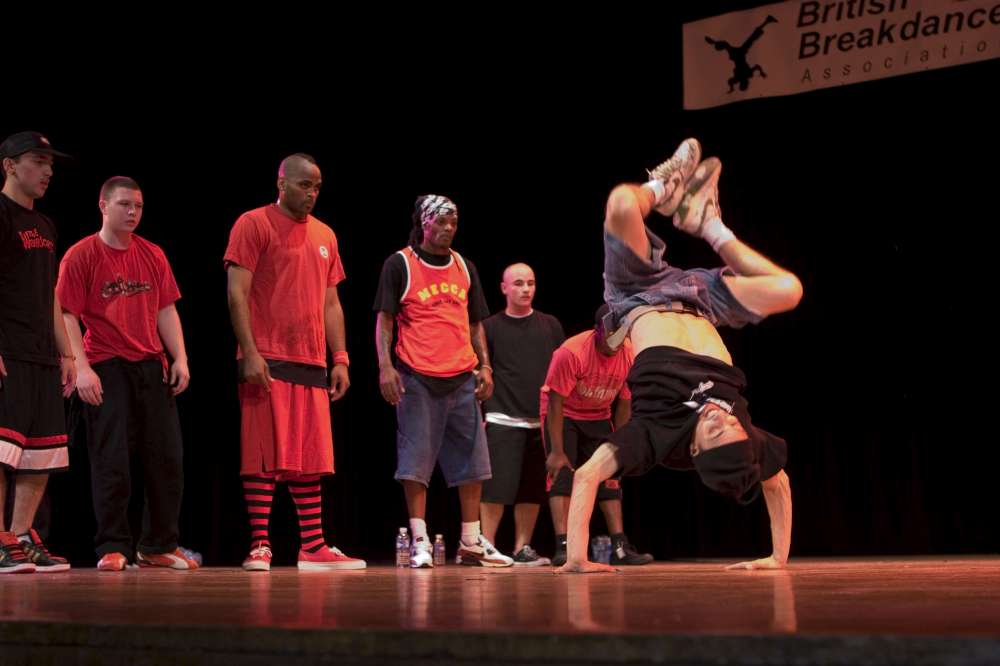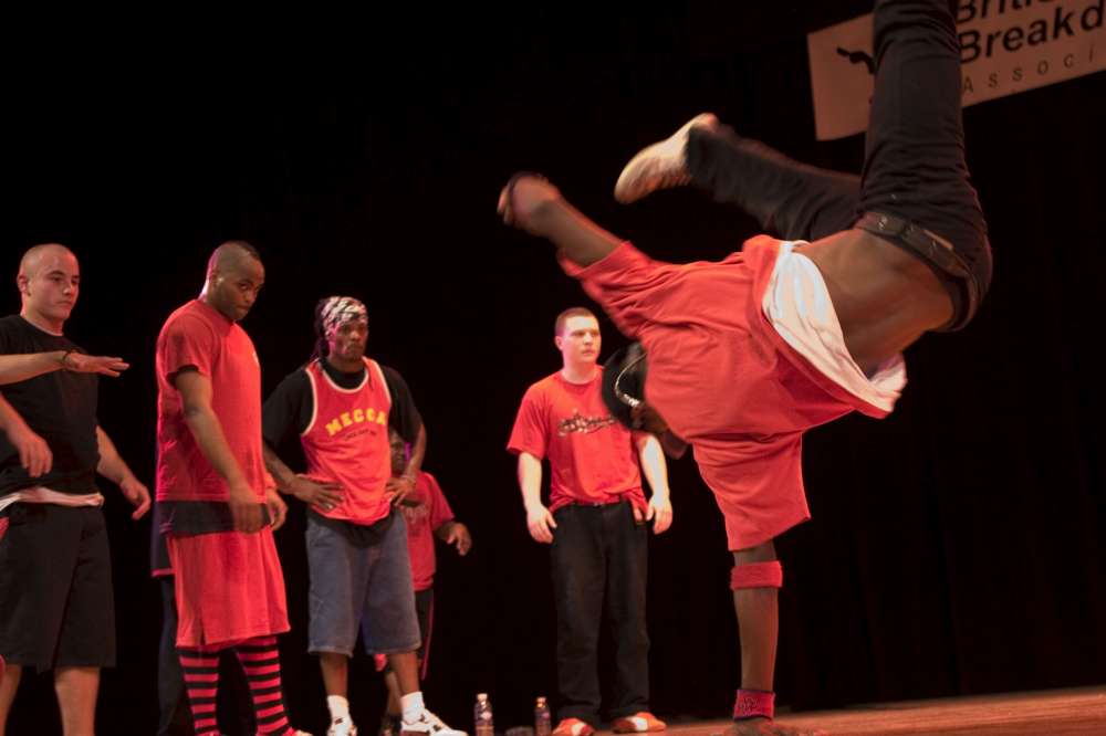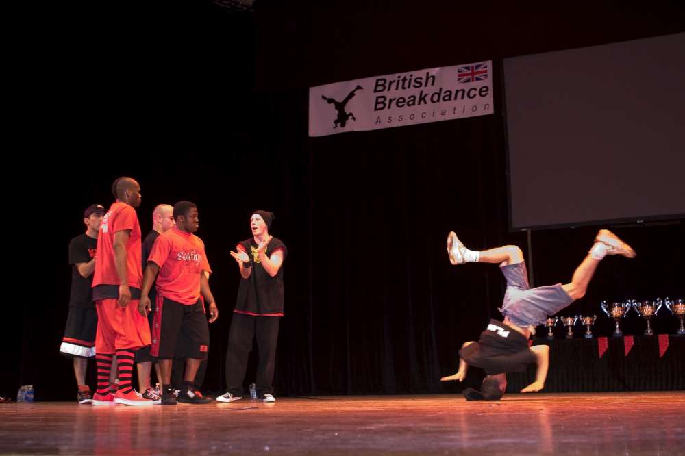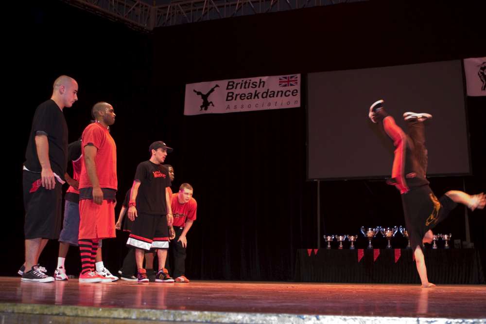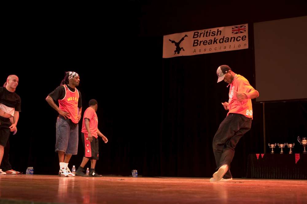The crew compete on stage against B-boy crew, Trinity, in the British Break Dance Championships 2007 Finals held in Croydon, United Kingdom