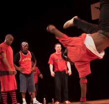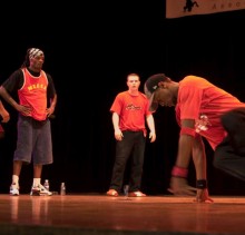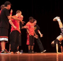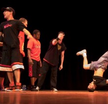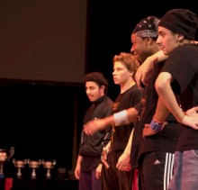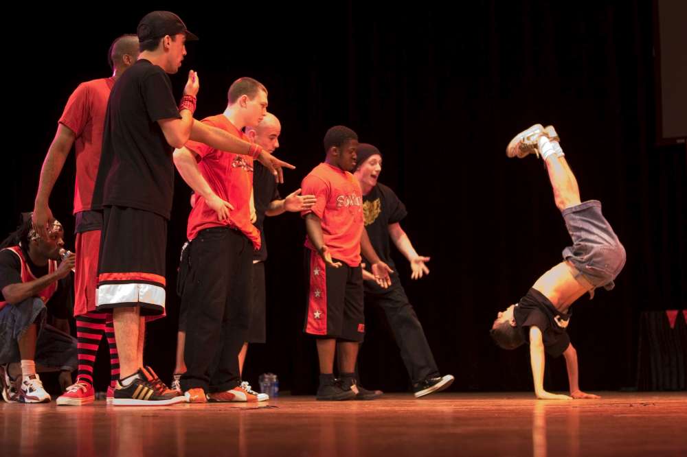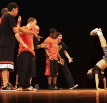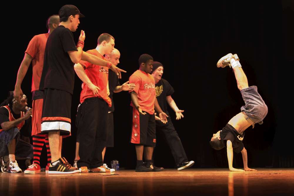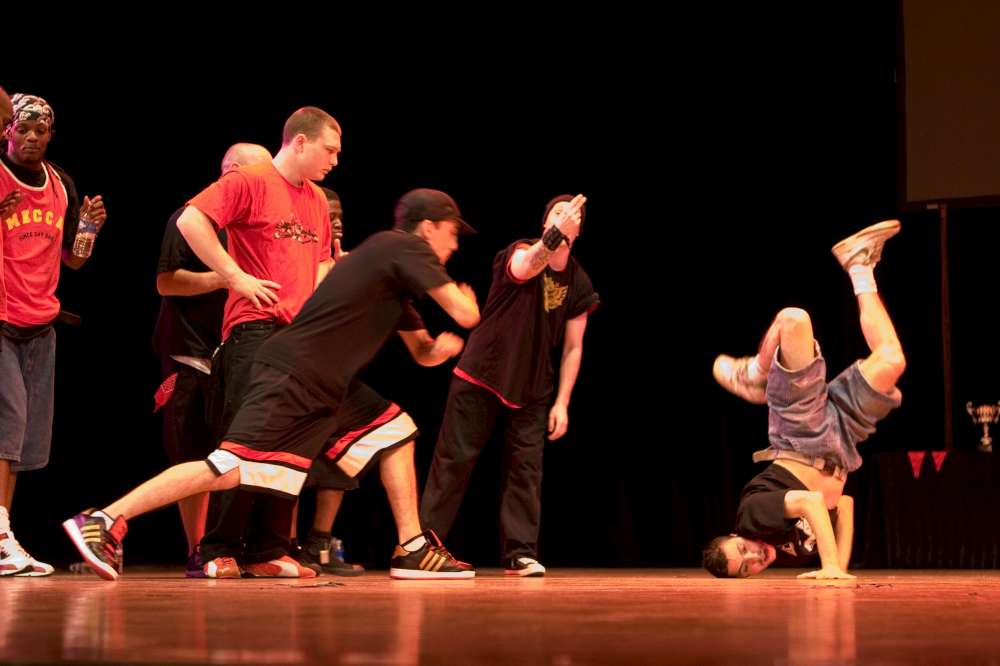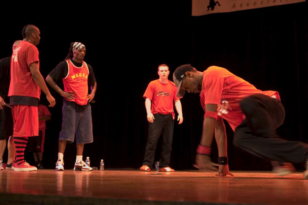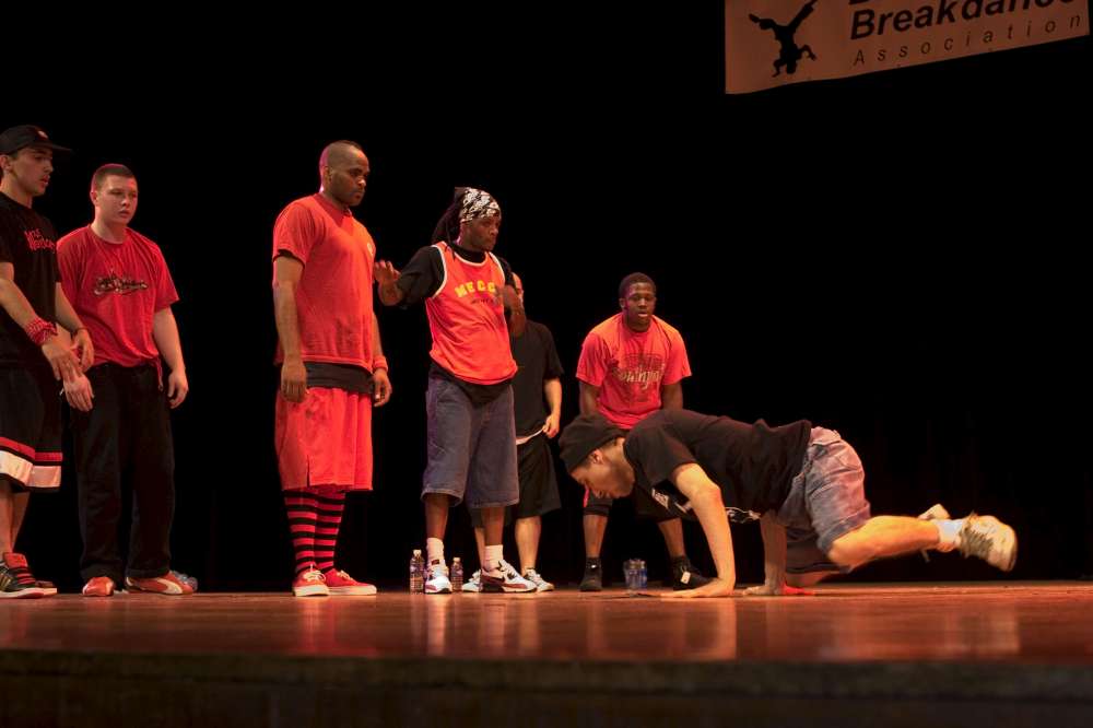 The crew compete on stage against B-boy crew, Trinity, in the British Break Dance Championships 2007 Finals held in Croydon, United Kingdom