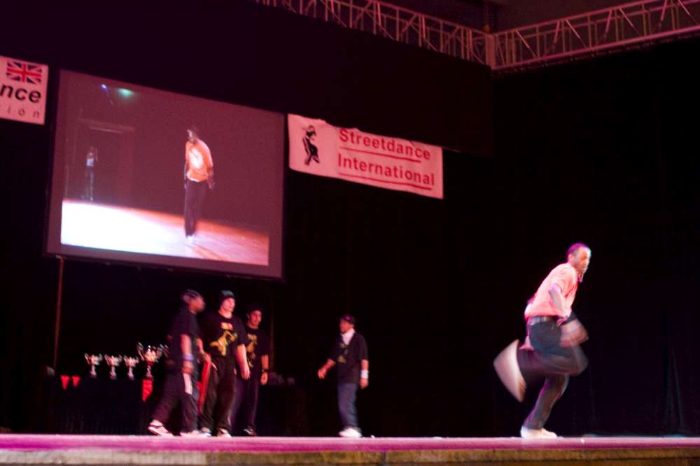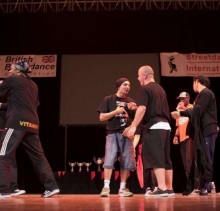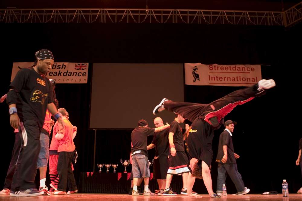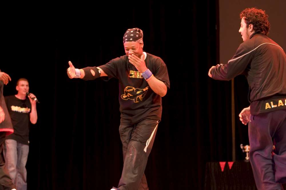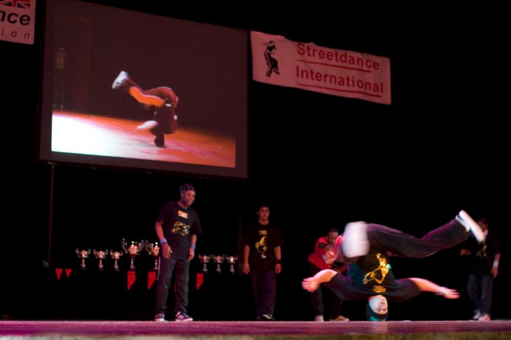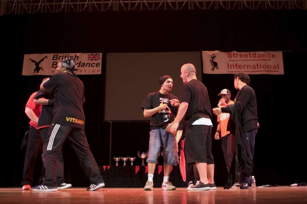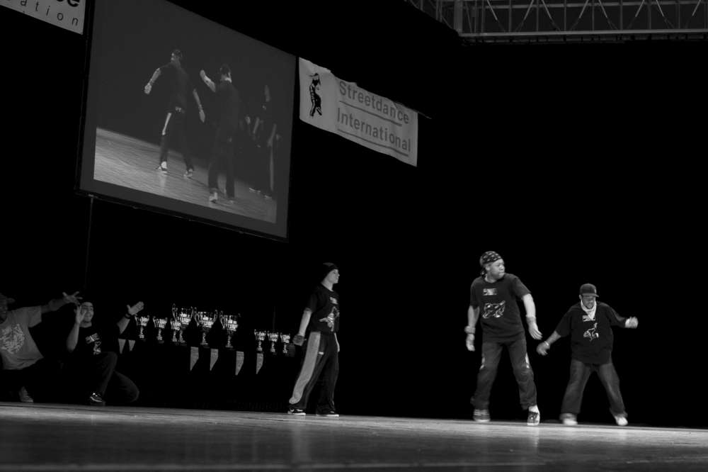 The crew compete on stage against B-boy crew, Trinity, in the British Break Dance Championships 2007 Finals held in Croydon, United Kingdom-