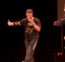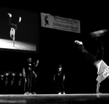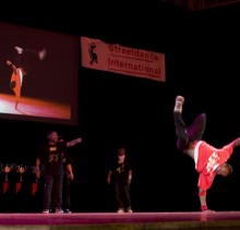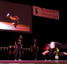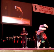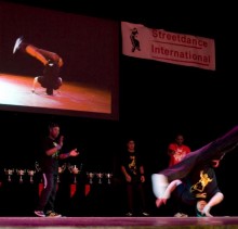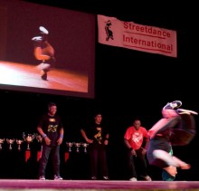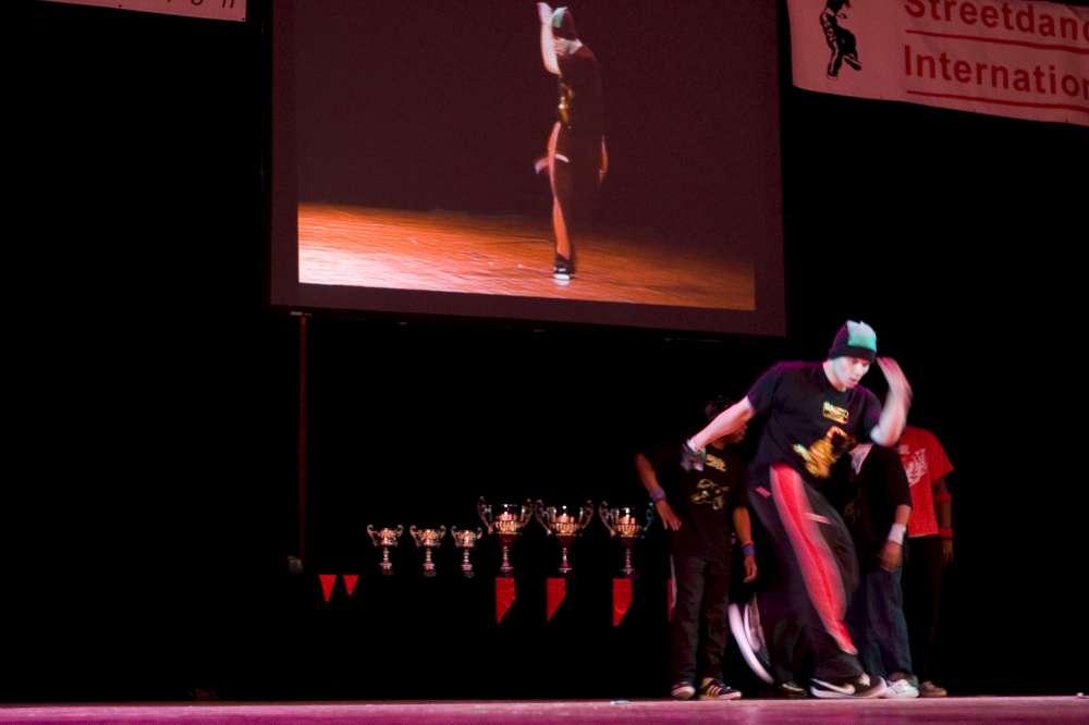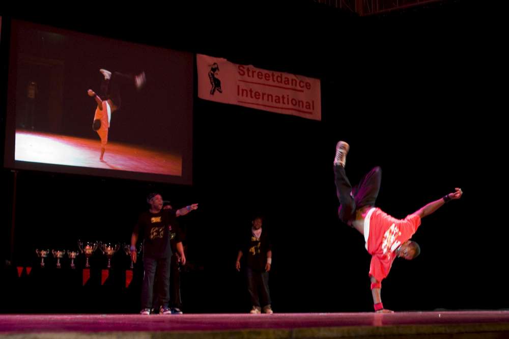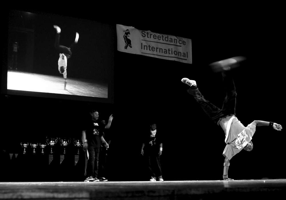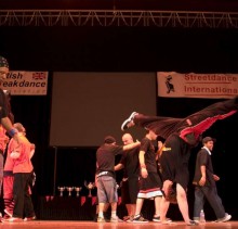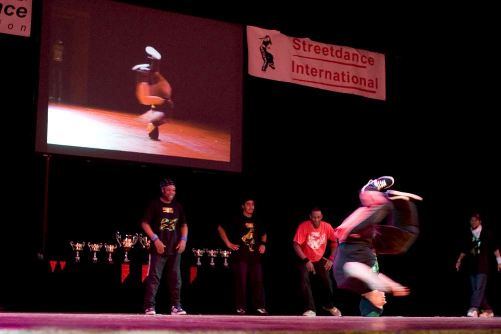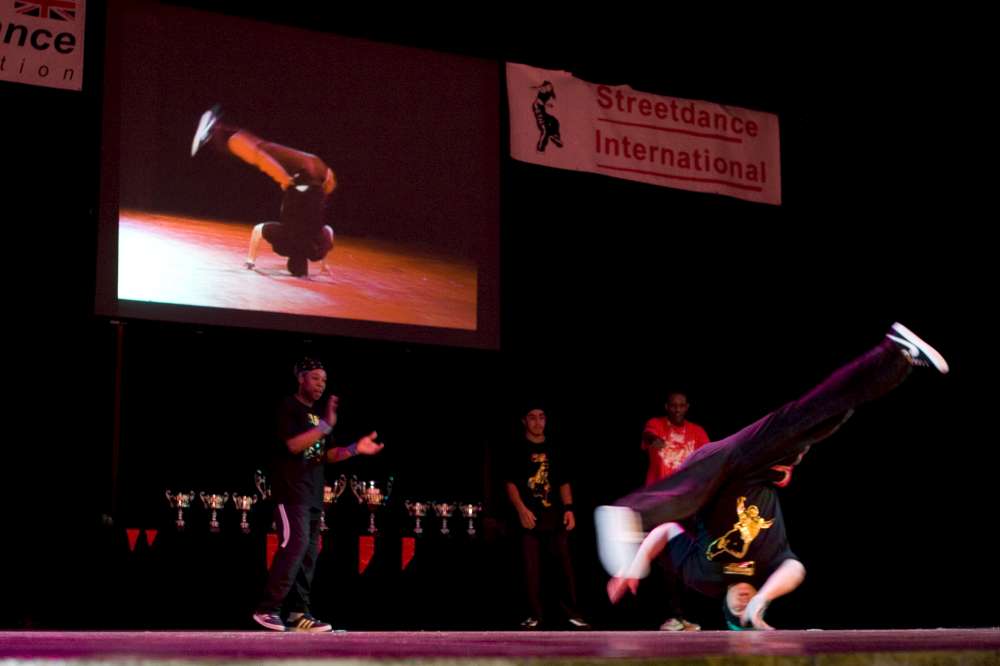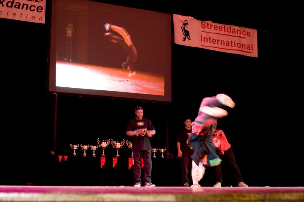 The crew compete on stage against B-boy crew, Trinity, in the British Break Dance Championships 2007 Finals held in Croydon, United Kingdom-