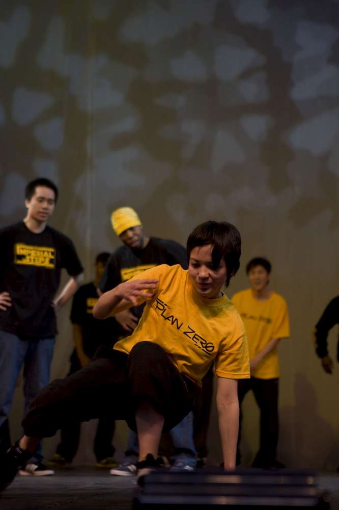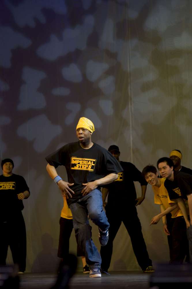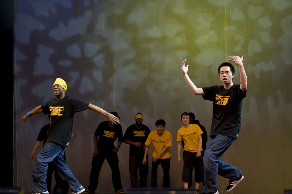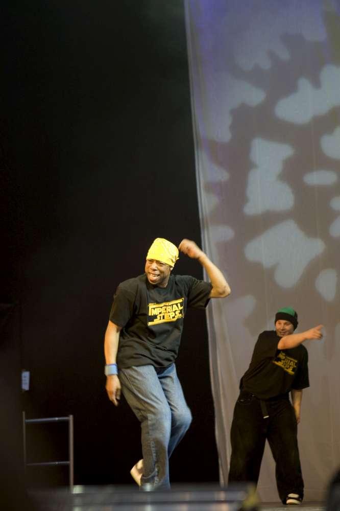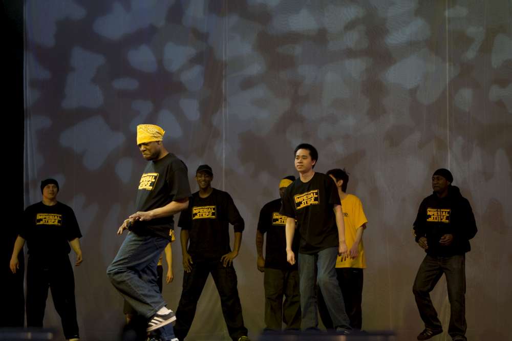 The Imperial Steps Crew, along with Plan Zero, demonstrate their routines at the Move It 2008 exhibition at London Olympia, United Kingdom.-