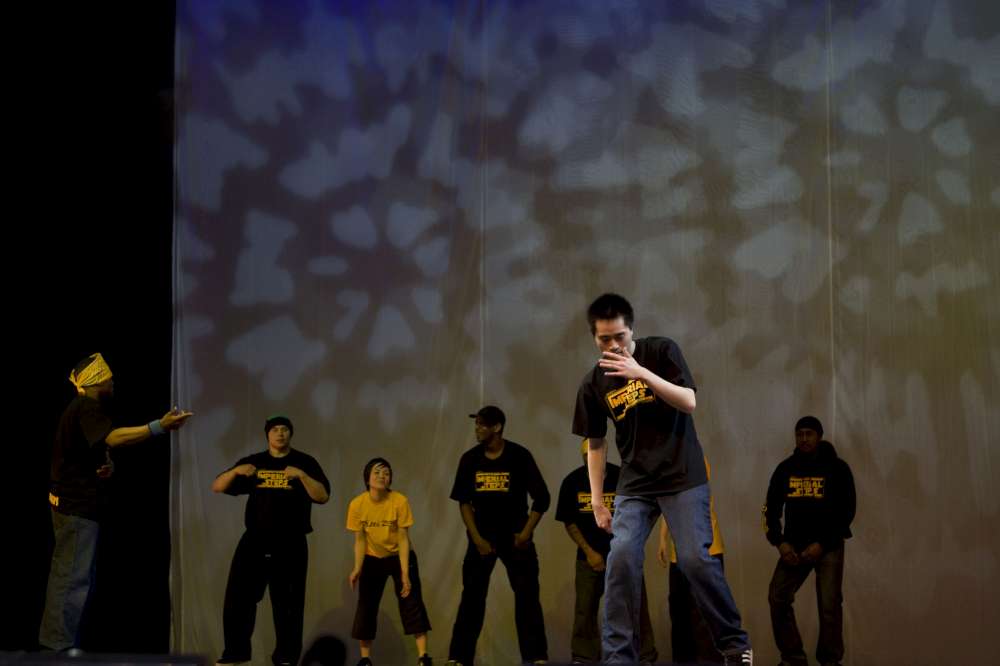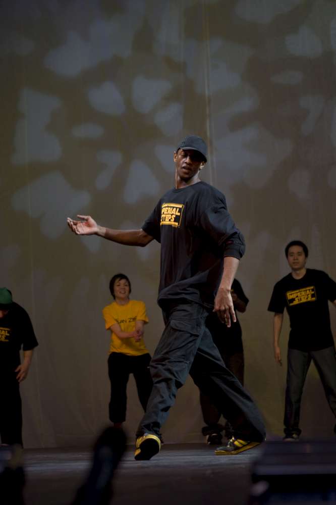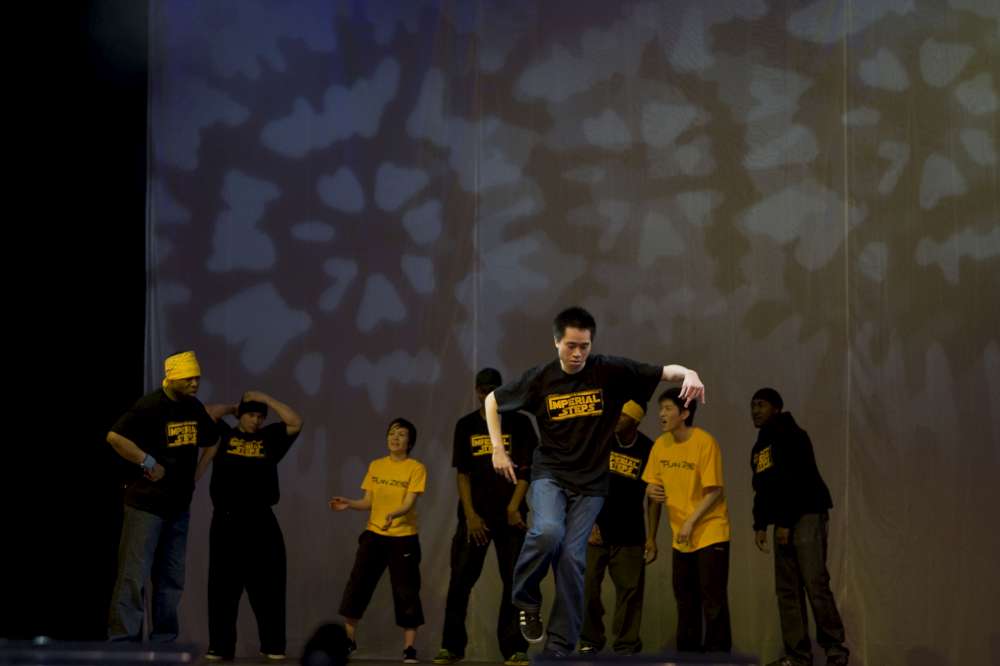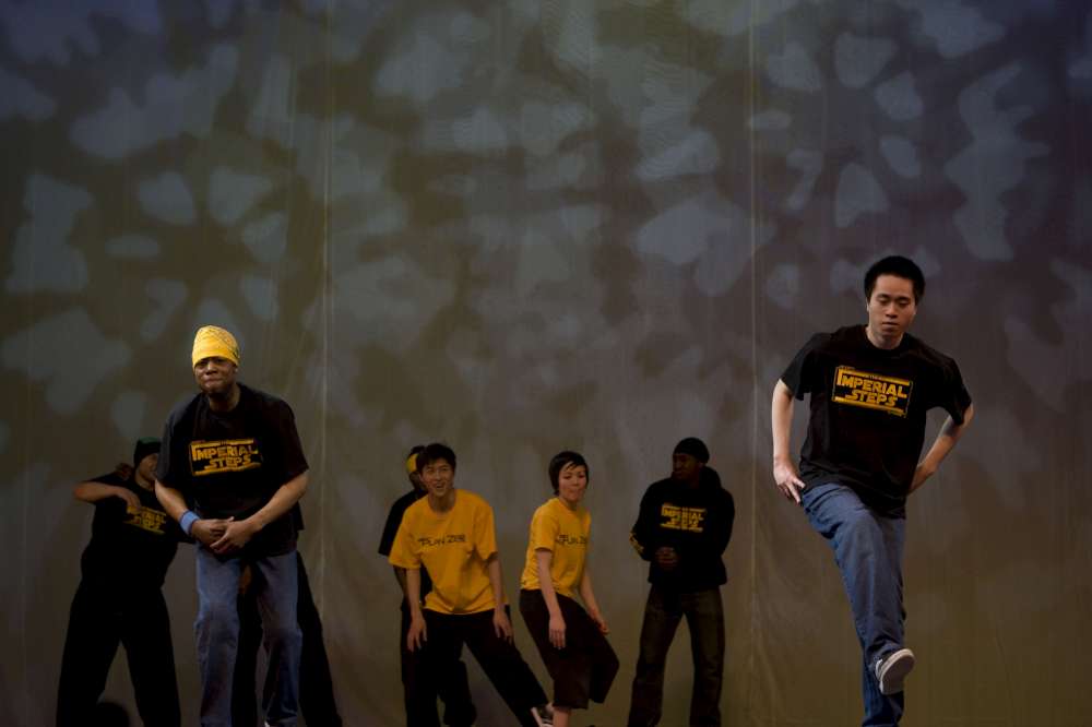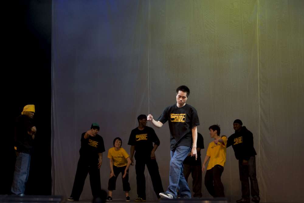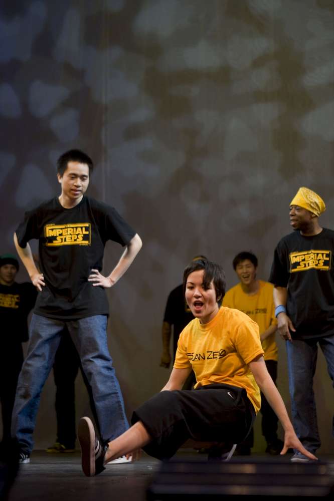 The Imperial Steps Crew, along with Plan Zero, demonstrate their routines at the Move It 2008 exhibition at London Olympia, United Kingdom.-