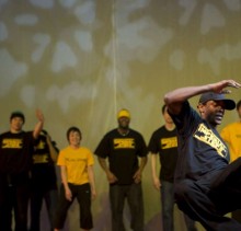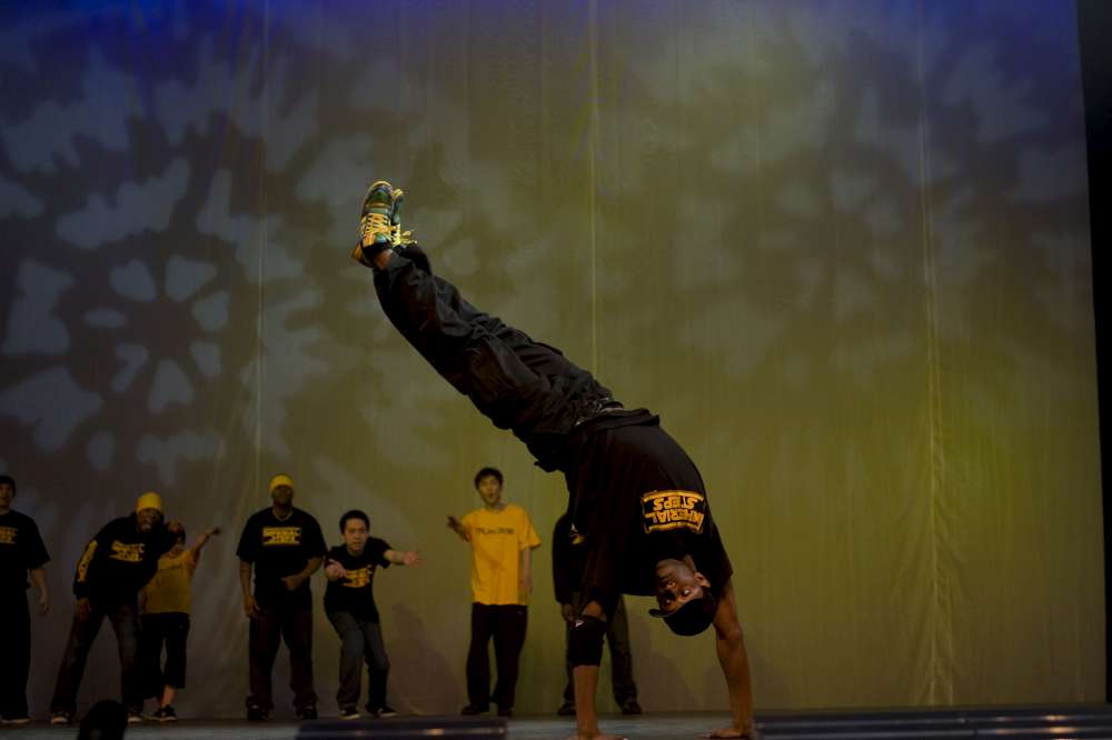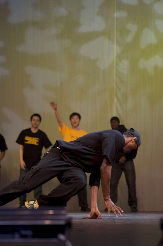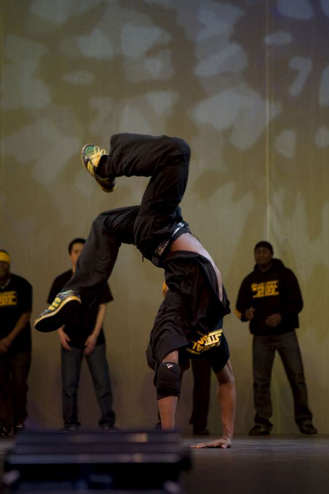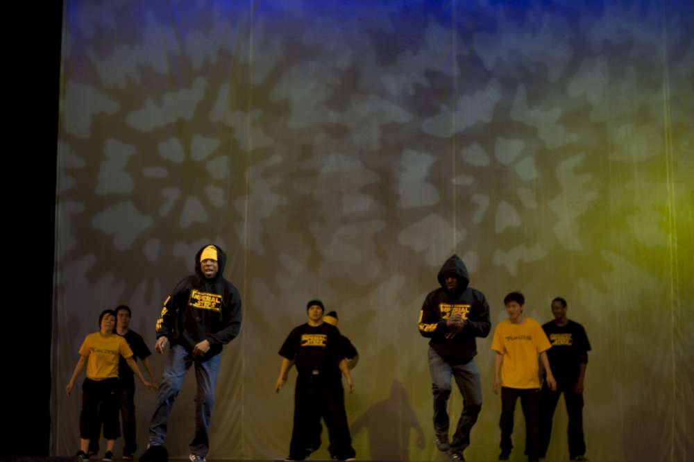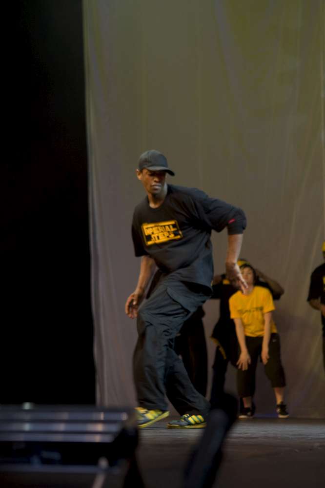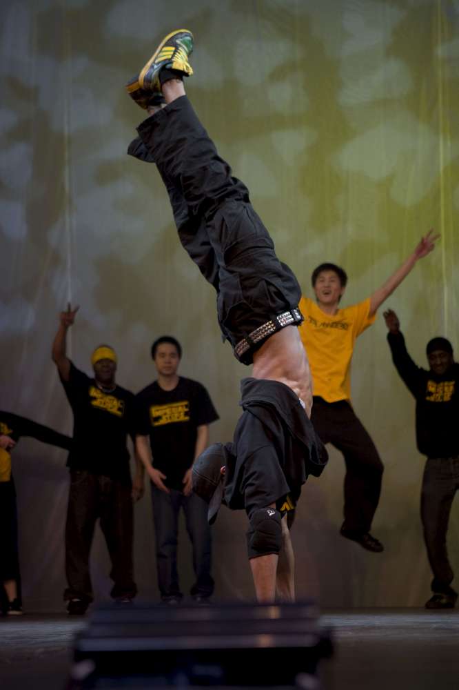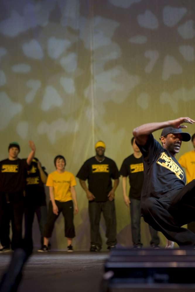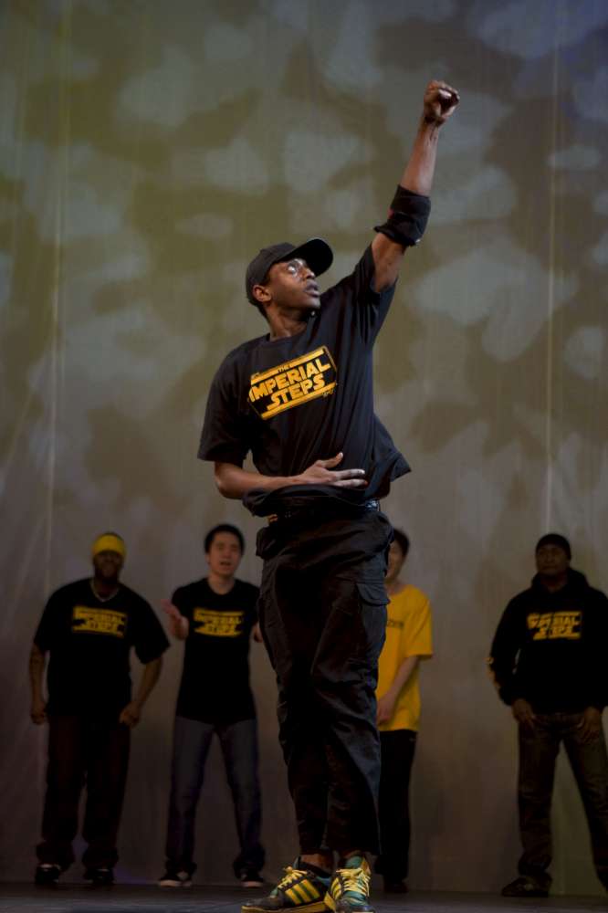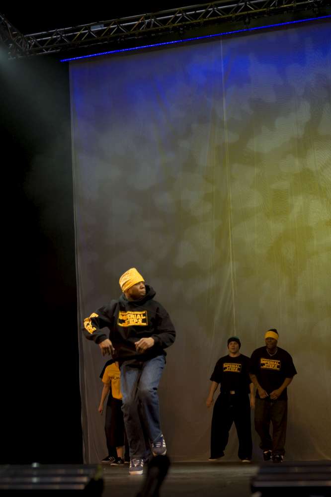 The Imperial Steps Crew, along with Plan Zero, demonstrate their routines at the Move It 2008 exhibition at London Olympia, United Kingdom.