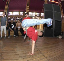 The Imperial Steps Crew shows up at the Volvic Lovebox festival in 2006.